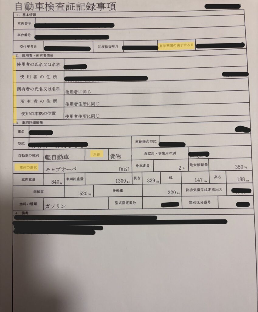 では、実際の自動車検査証記録事項を見ながら、どこをチェックすればよいのか確認していきましょう。