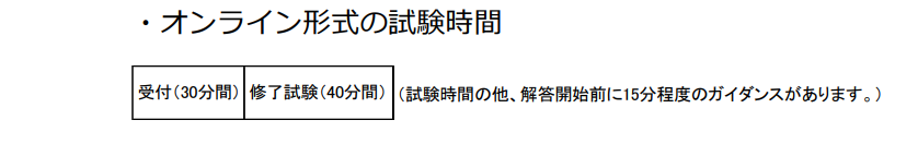 受講 → 試験 → 修了証の受領まで トータル2〜3か月 が目安です。