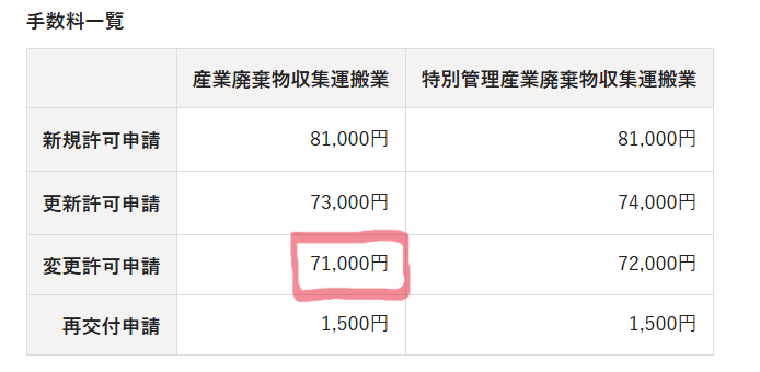 大阪府の場合、新規申請では 81,000 円の手数料が発生しますが、変更許可申請の手数料は 71,000 円 です。