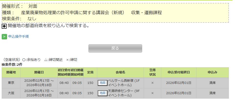 令和8年度の産業廃棄物講習会の日程については、現時点ではまだ発表されていません。