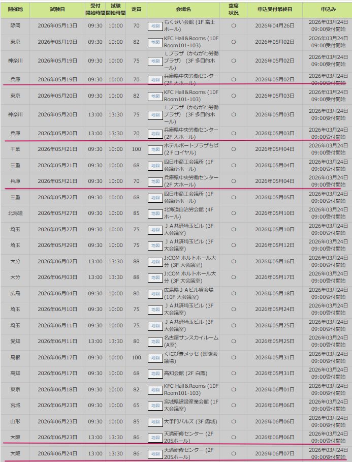 関西圏でオンライン講習を受講する場合、最も早い日程は兵庫県の5月19日・20日・21日となっています。一方で、大阪会場については6月23日・24日まで開催がないため、関西で早めの申請をお考えの方は、兵庫県の講習会を受講されることをおすすめいたします。